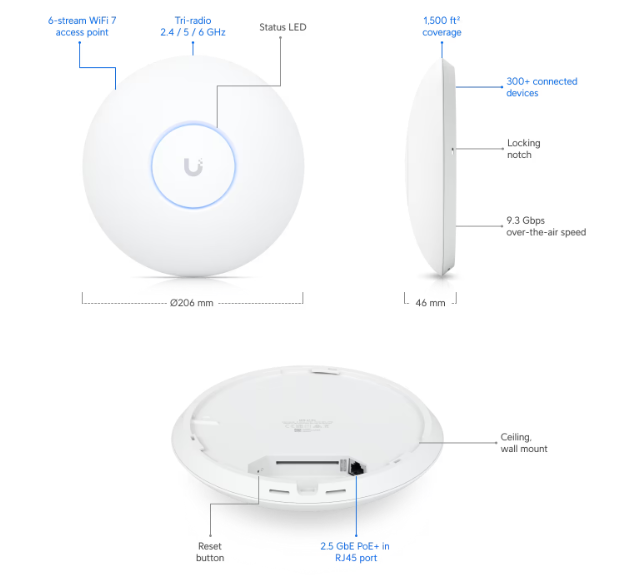 Der UniFi 7 Pro ist die ideale WLAN-Lösung für kleine und mittlere Unternehmen, die auf Leistung, Stabilität und einfache Verwaltung setzen. Ausgestattet mit Wi-Fi 6 bietet der Access Point hohe Geschwindigkeiten, große Reichweite und zuverlässige Verbindungen – auch bei vielen gleichzeitig verbundenen Geräten. Dank zentraler Verwaltung über den UniFi Network Controller behalten IT-Verantwortliche jederzeit die Kontrolle über ihr Netzwerk. Der UniFi 7 Pro unterstützt moderne Sicherheitsstandards, lässt sich flexibel in bestehende Infrastrukturen integrieren und eignet sich ideal für Büros, Praxen oder Filialbetriebe. Eine professionelle Lösung für zukunftssichere WLAN-Versorgung – skalierbar, effizient und wirtschaftlich.